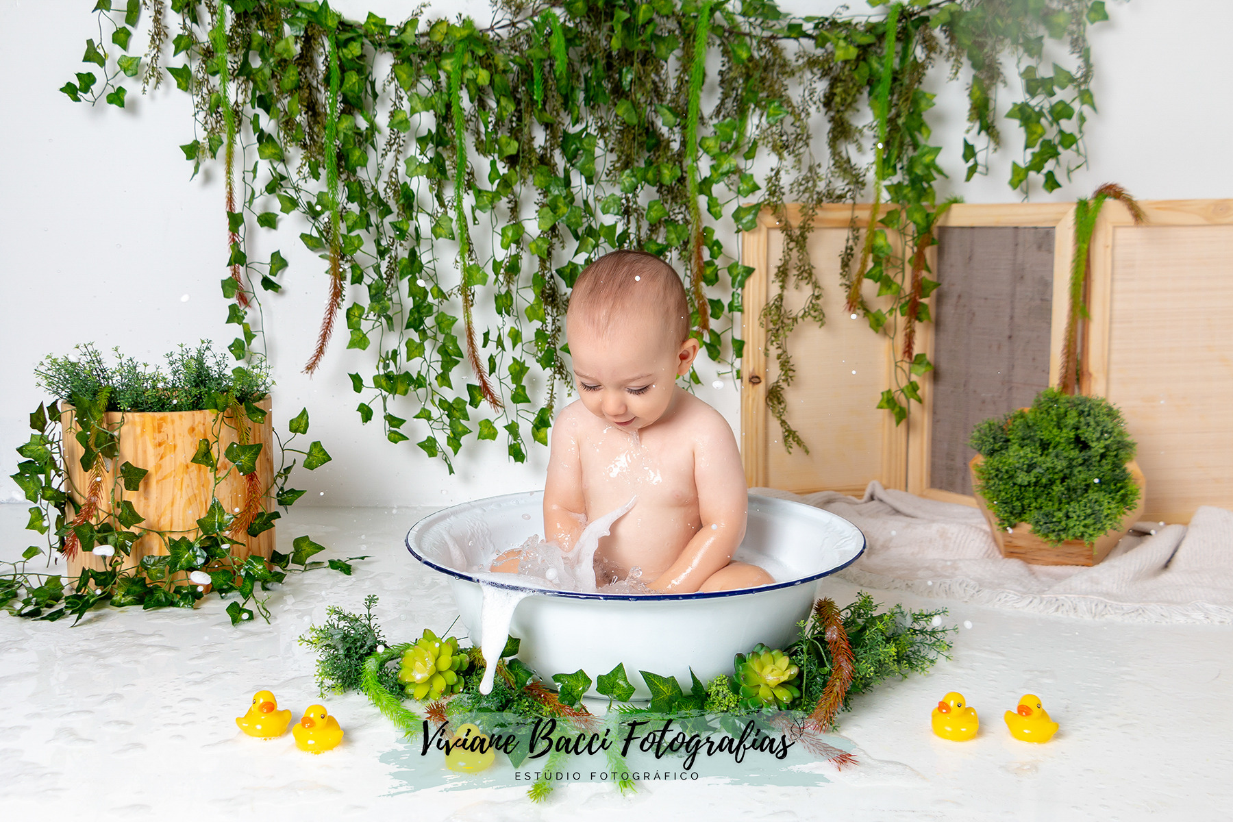 Nesta proposta de ensaio, o seu bebê estará a vontade para se divertir (muito) com a nossa tina d'água.